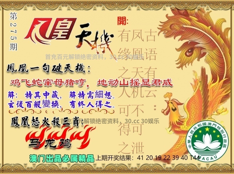 275期:六肖【龙牛蛇鸡羊猪】开:鸡45准 |