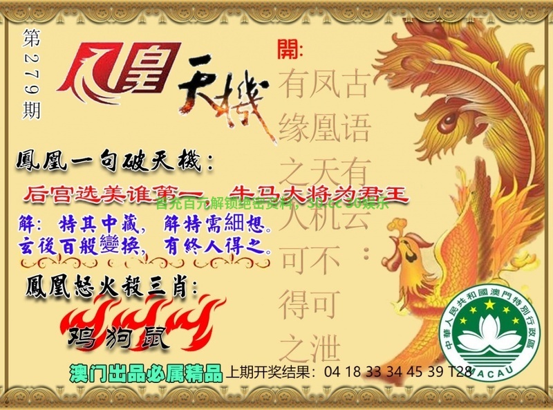 279期:凤凰一句破天机:后宫选美谁第一,牛马大将为君王 六肖中特:羊兔狗牛蛇马 四肖中特:羊兔狗牛 绝杀一肖:鸡鸡鸡 精选12码:23.35.15.27.20.32.17.29.25.37.24.36 |